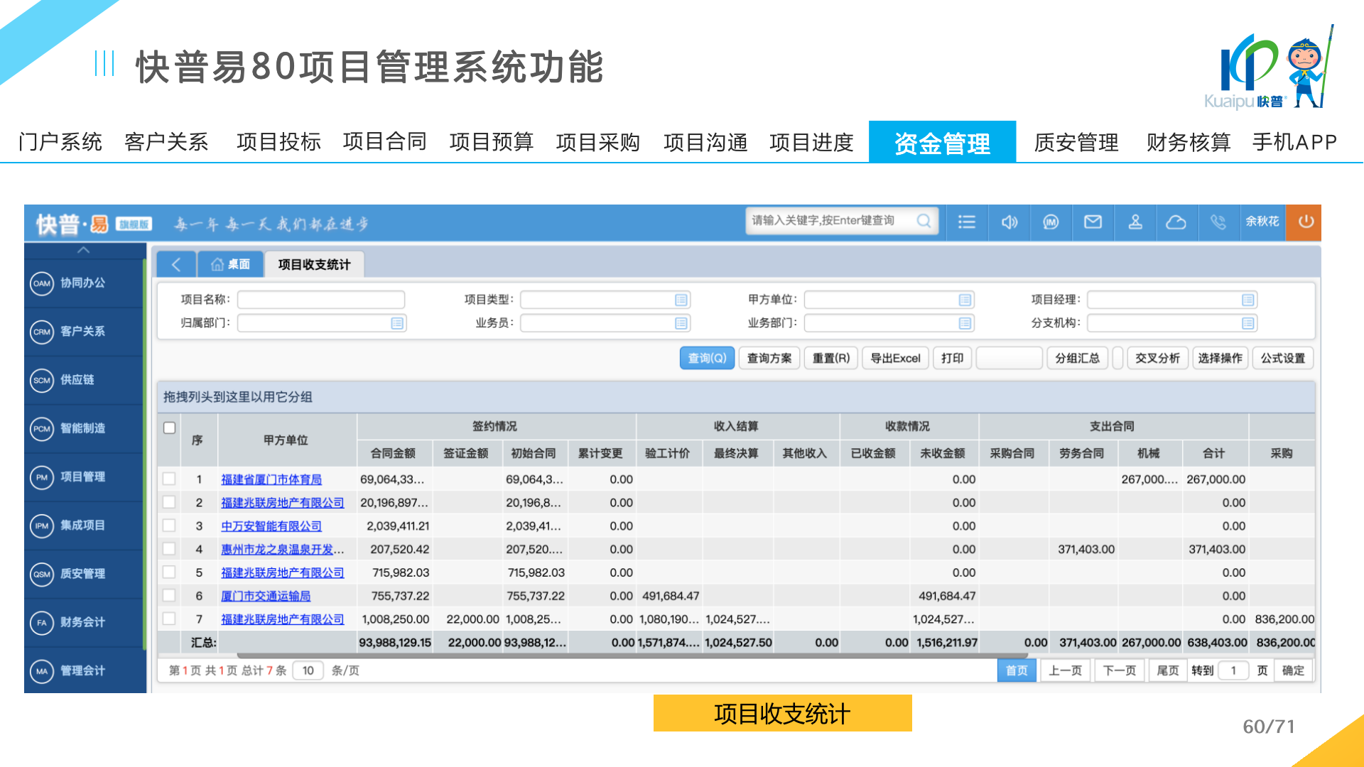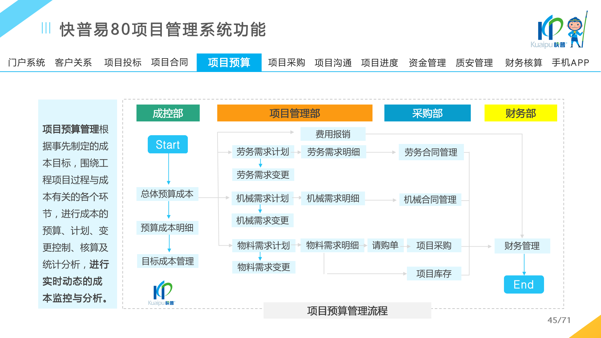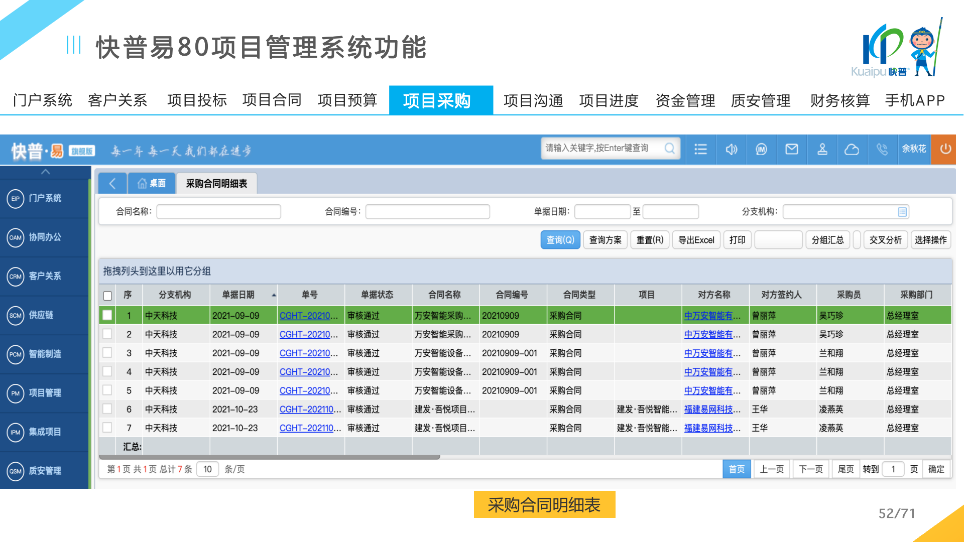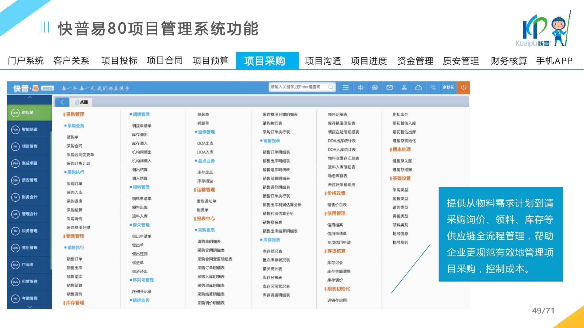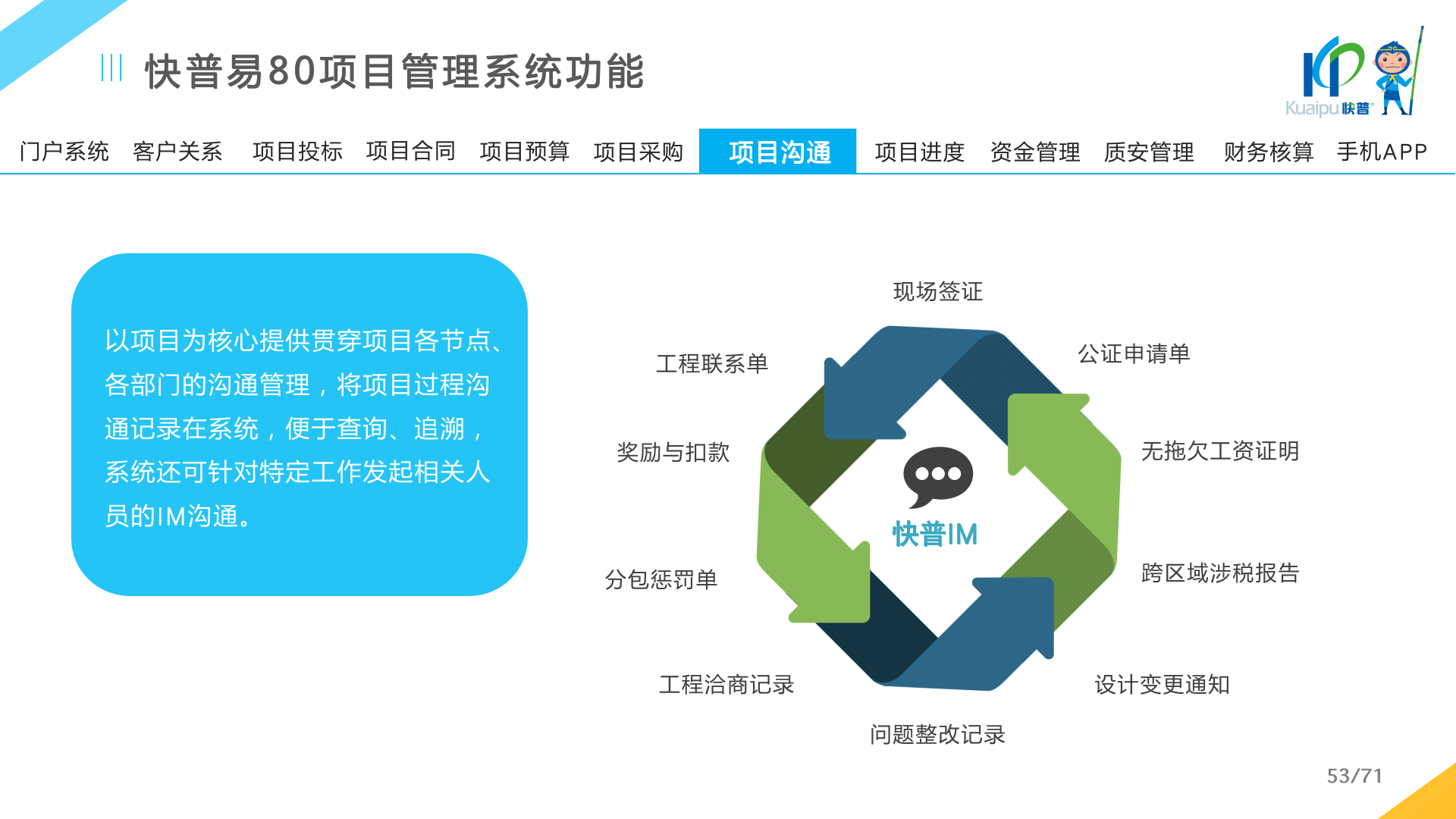 快普易80以項(xiàng)目管理為核心,通過“四控、四管、一協(xié)調(diào)”方式,對(duì)項(xiàng)目進(jìn)度、成本、資金、質(zhì)量安全進(jìn)行全面控制,實(shí)現(xiàn)投標(biāo)管理、合同管理、物資管理、預(yù)算管理等項(xiàng)目全生命周期項(xiàng)目的數(shù)字化管理,實(shí)現(xiàn)資源合理配置、保障良好的項(xiàng)目效益。