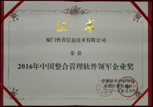 廈門(mén)快普連續(xù)五年受邀參加軟博會(huì)。廈門(mén)快普作為中國(guó)整合管理的倡導(dǎo)者、推動(dòng)者和領(lǐng)導(dǎo)者,在公司創(chuàng)立時(shí)就將“整合管理”作為企業(yè)的發(fā)展戰(zhàn)略,并戰(zhàn)略性地提出:“將整合進(jìn)行到底,把整合做到極致,讓所有企業(yè)實(shí)施整合管理”,立志成為中國(guó)企業(yè)整合管理專家,堅(jiān)持把最前沿、最創(chuàng)新、最復(fù)雜、最有想法、含金量最高的IT行業(yè)作為公司發(fā)展的戰(zhàn)略性行業(yè),長(zhǎng)期專注為系統(tǒng)集成企業(yè)、軟件企業(yè)、智能化企業(yè)、工程企業(yè)及高新技術(shù)企業(yè)等這些關(guān)聯(lián)度很高的行業(yè)提供整體管理解決方案,用盡可能低的成本解決這些前沿創(chuàng)新的經(jīng)營(yíng)管理模式,幫助這些企業(yè)實(shí)現(xiàn)管理升級(jí),因此榮獲“2016年度中國(guó)整合管理軟件領(lǐng)軍企業(yè)獎(jiǎng)”,廈門(mén)快普董事長(zhǎng)溫祝平先生同時(shí)榮獲“2016年度中國(guó)整合管理軟件領(lǐng)軍人物獎(jiǎng)”!