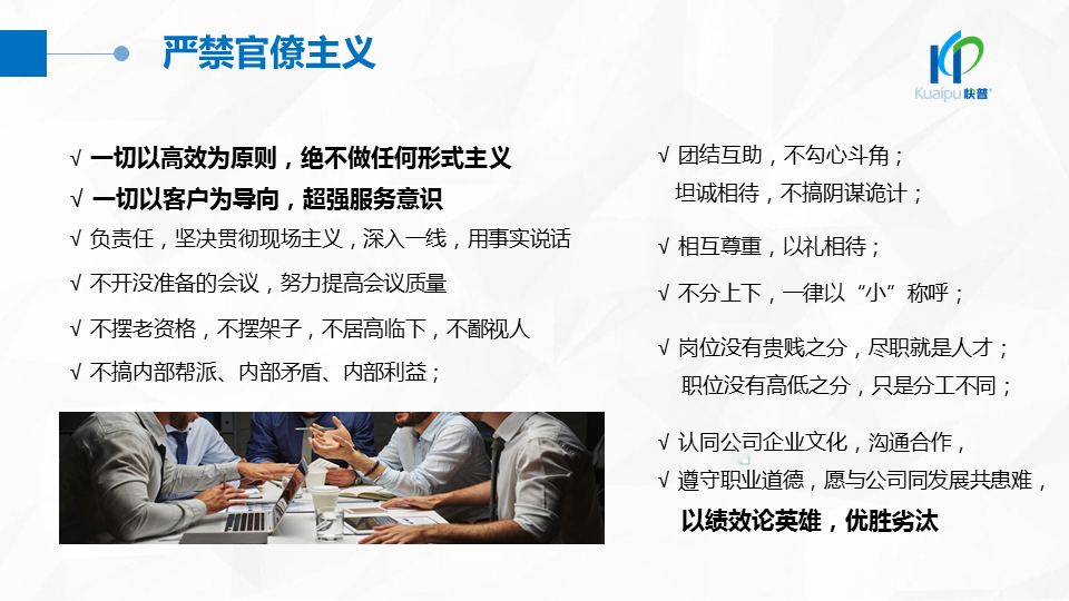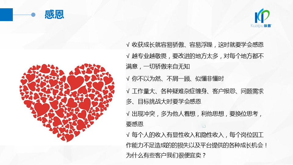 2018年9月,快普董事長溫祝平先生發(fā)表《快普經(jīng)營哲學(xué)2.0》,指出“以人為本、經(jīng)營人心”的經(jīng)營理念,強(qiáng)調(diào)進(jìn)一步建設(shè)“幸福企業(yè)文化”的重要性。