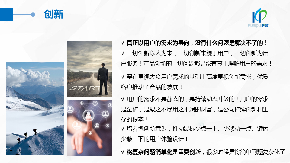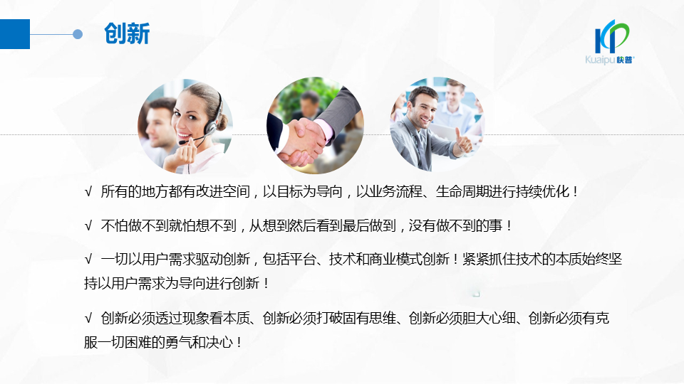 溫董在大會(huì)上指出:“成功的企業(yè)、成功的產(chǎn)品都在做符合人性的事!成功的個(gè)人都在挑戰(zhàn)人性弱點(diǎn)!作為中國企業(yè)信息化管理的服務(wù)商,我們應(yīng)該充分理解人性定律,為客戶提供一切人性化的產(chǎn)品與服務(wù),讓快普成為最懂企業(yè)用戶需求的中國企業(yè)!”