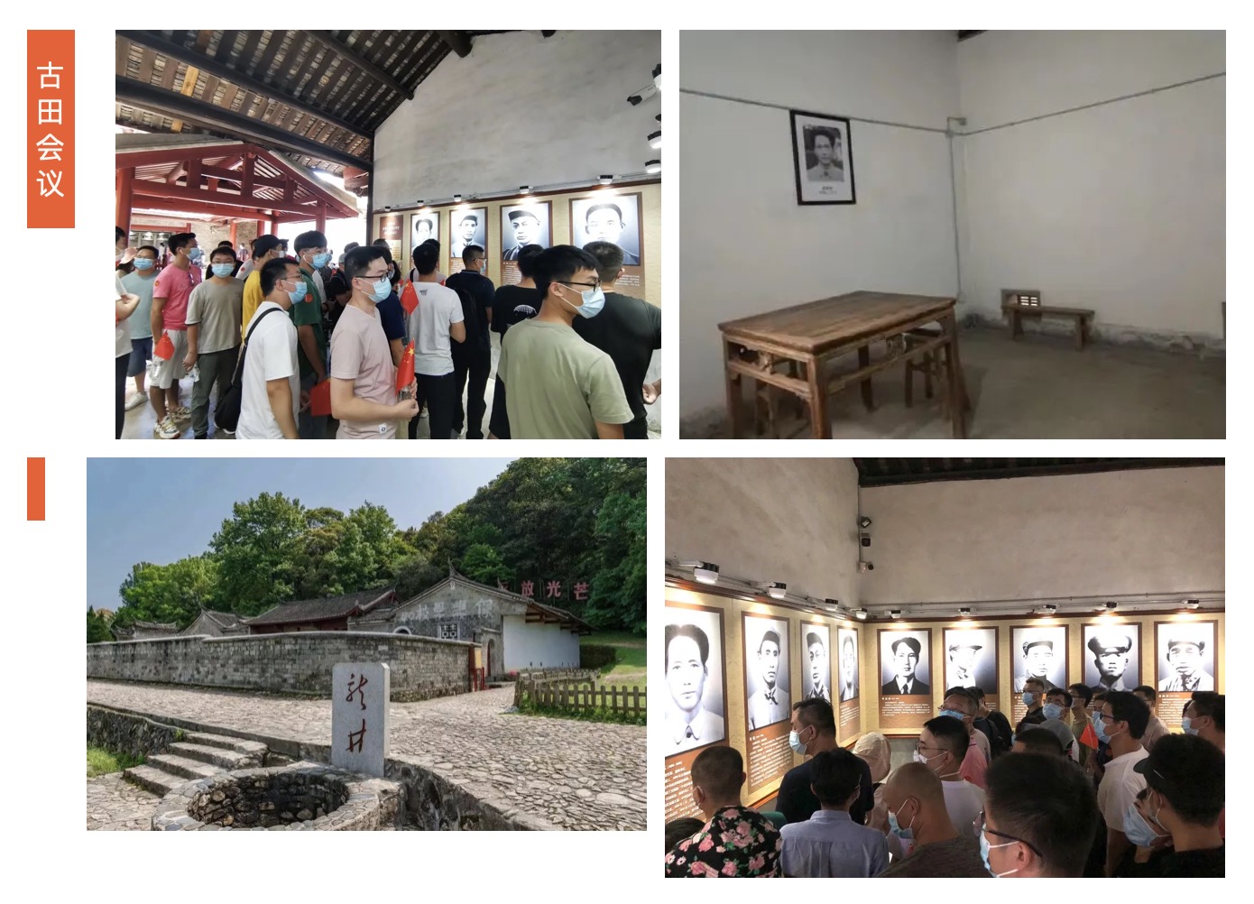 會址保持了當年的陳設(shè),6列學(xué)生桌椅陳舊而整潔。會場正上方掛著“中國共產(chǎn)黨紅軍第九次代表大會”的橫幅,地板上的斑斑炭火印跡,瞬間把我們帶到了1929年那次非同尋常的會議。