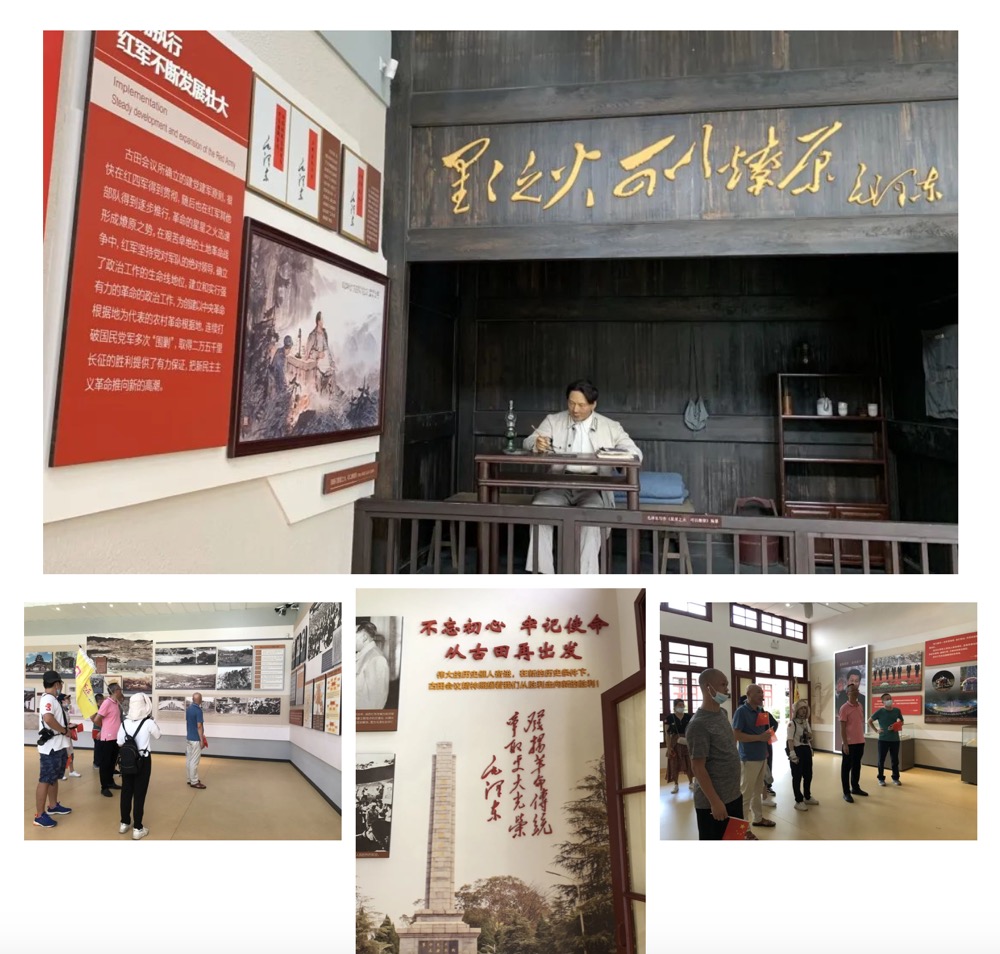 清澈小溪蜿蜒繞過錯落有致的新房舊舍,一路上鮮艷的紅旗迎風(fēng)招展,經(jīng)典革命歌曲縈繞耳際。遠遠的,我們就看見“古田會議永放光芒”八個紅色的大字矗立在山腳下,猶如一團團火焰,映照碧空。第二站,我們踏上“古田會議”會址這塊神圣的紅色熱土。