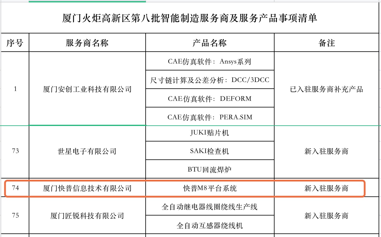 喜報(bào):快普入選“火炬智能制造服務(wù)商”