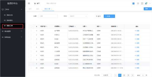 方法二、 通過(guò)自助平臺(tái)→工作臺(tái)→我的工單,查看所有工單記錄