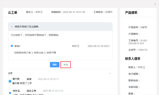 針對(duì)受理中的工單,您還可以進(jìn)行問(wèn)題補(bǔ)充。